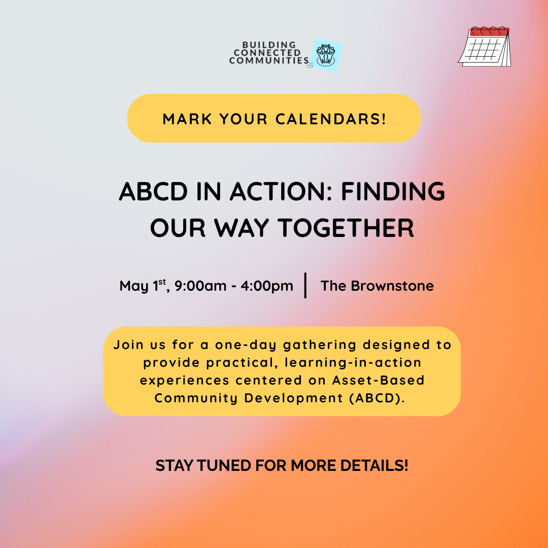 Join us for ABCD in Action: Finding Our Way Together, a free full-day, in-person event at The Brownstone designed to provide practical, learning-in-action experiences centered around asset-based community development (ABCD).