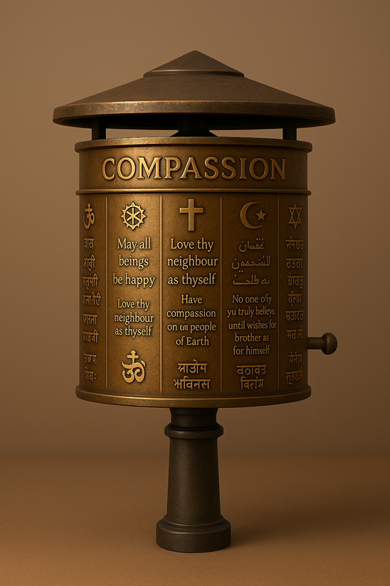 The idea; create a Buddhist prayer wheel and include scripture about compassion from different religious perspectives as the text on the wheel. When the wheel was spun, those prayers for compassion from all traditions would energetically be released into the world and would travel to all the things that need them. Tenzin wanted to connect with the CIC to ask religious leaders to select the text that's most appropriate from their community which we would then use as the prayers on the prayer wheel.